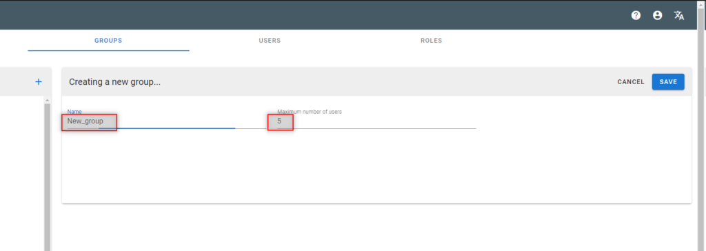 How to create a group of users? Open the “User management” menu as below. Click on the + Give a name and a number of users. Don’t forget to save! How to create a new user within a group?
